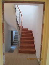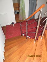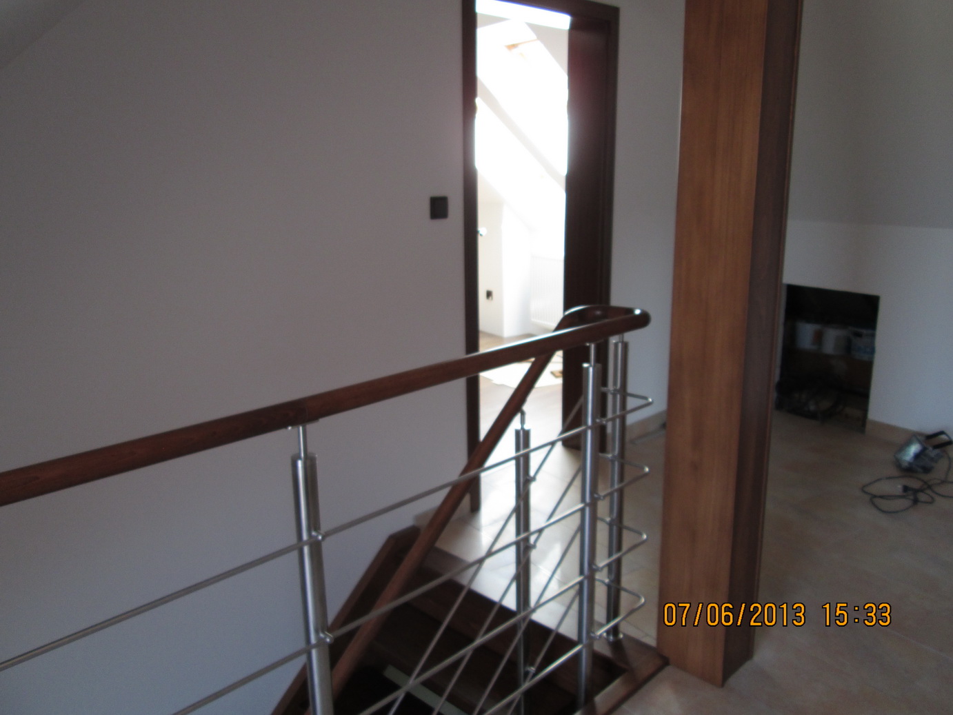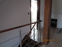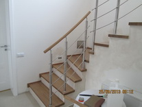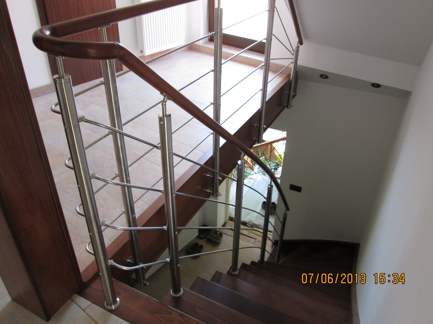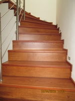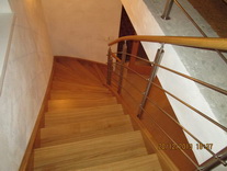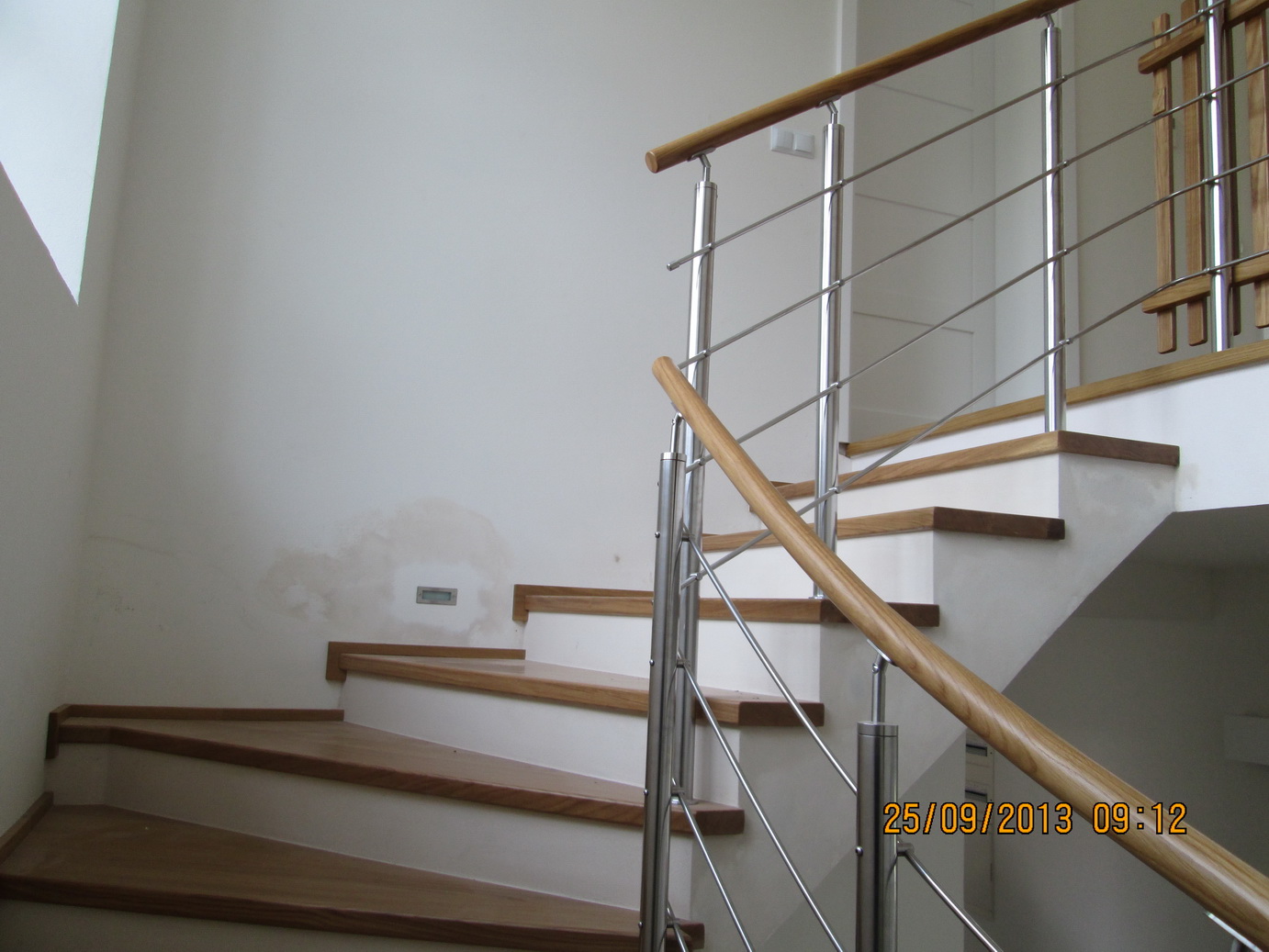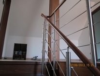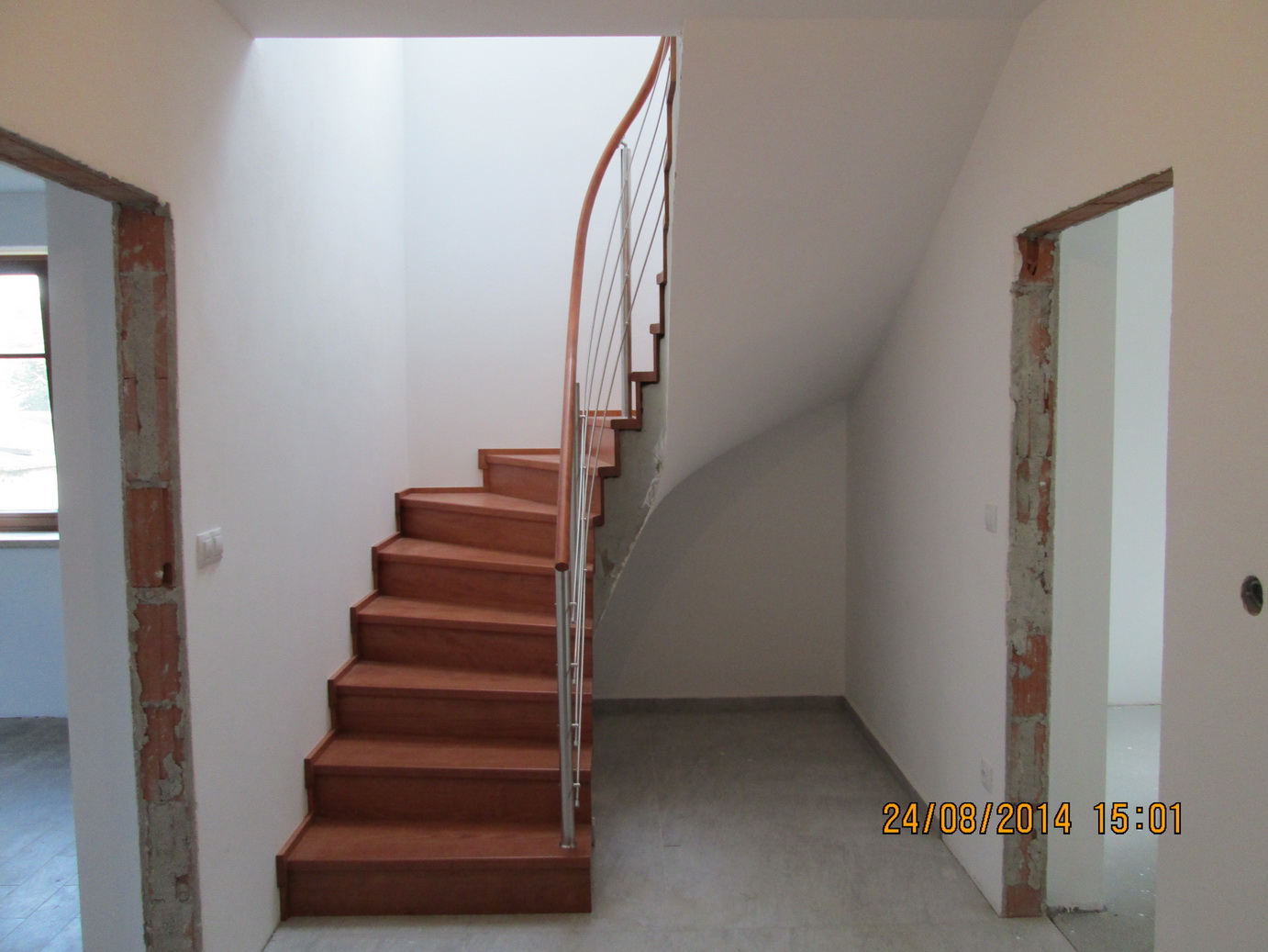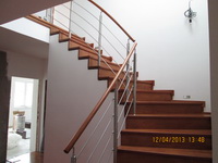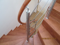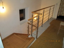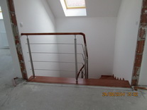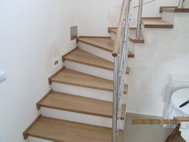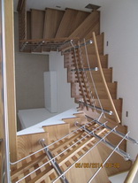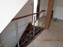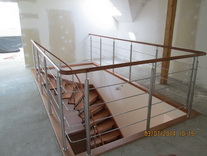 Obložkové schody s dřevěným i s nerezovým zábradlím