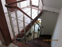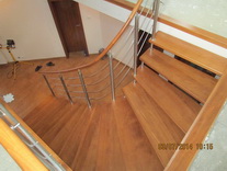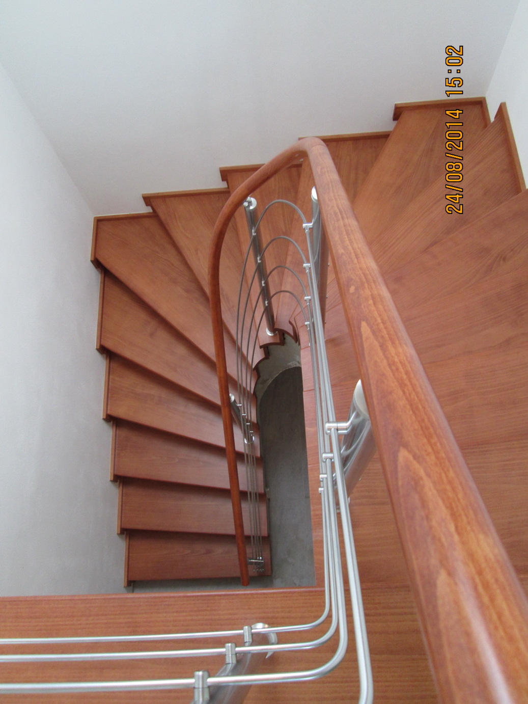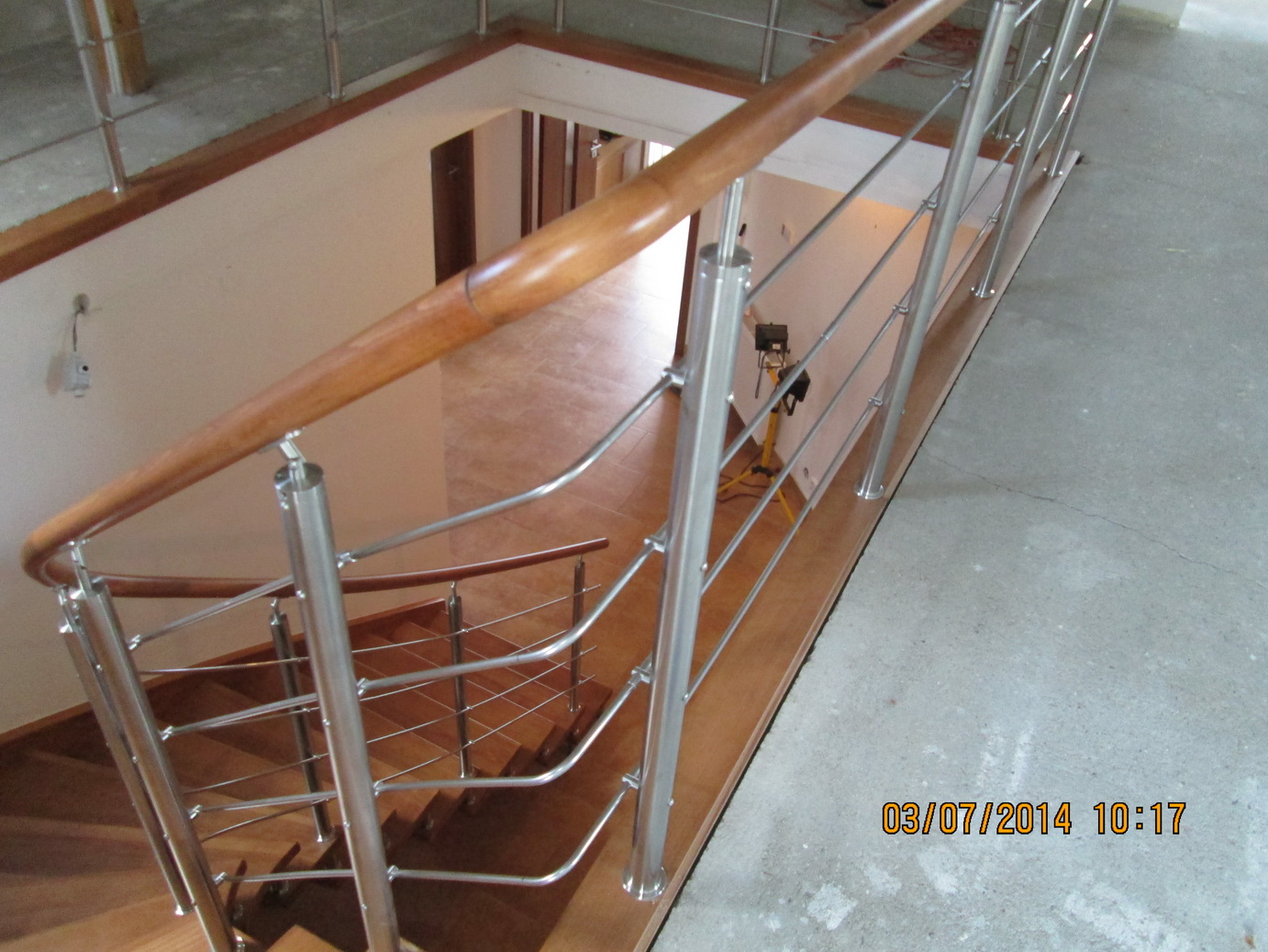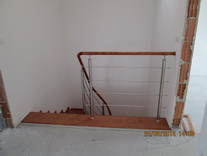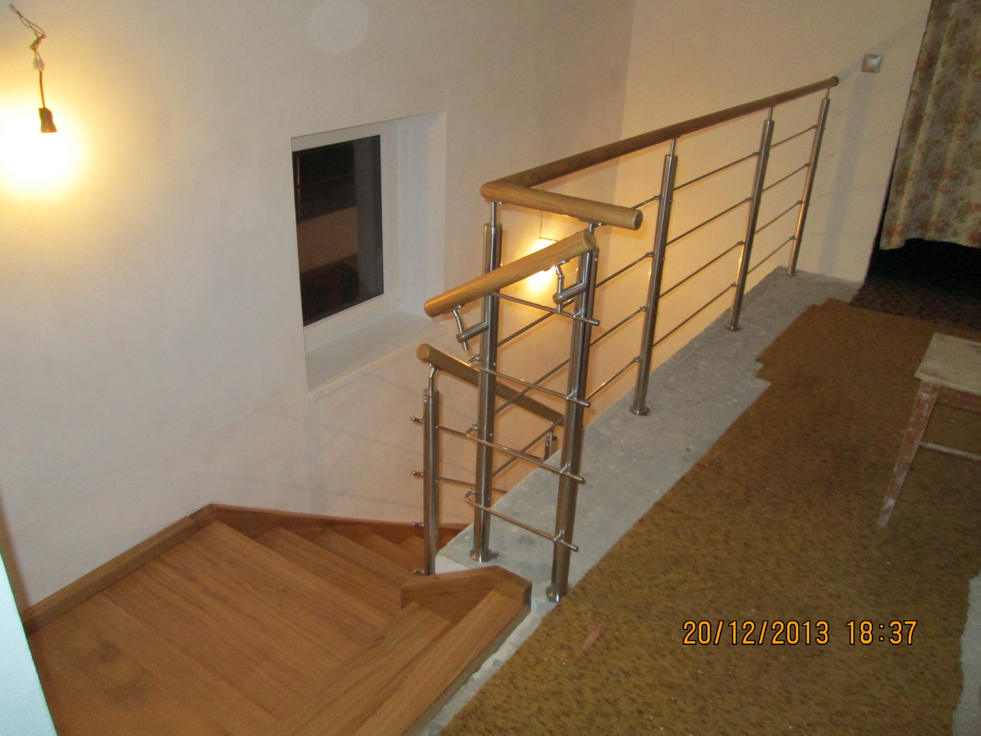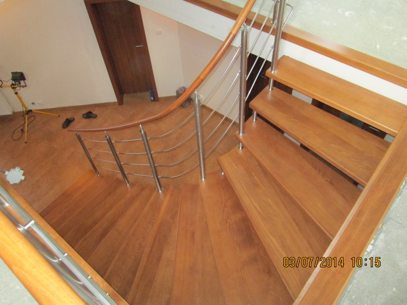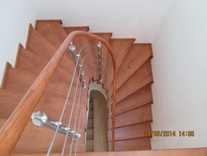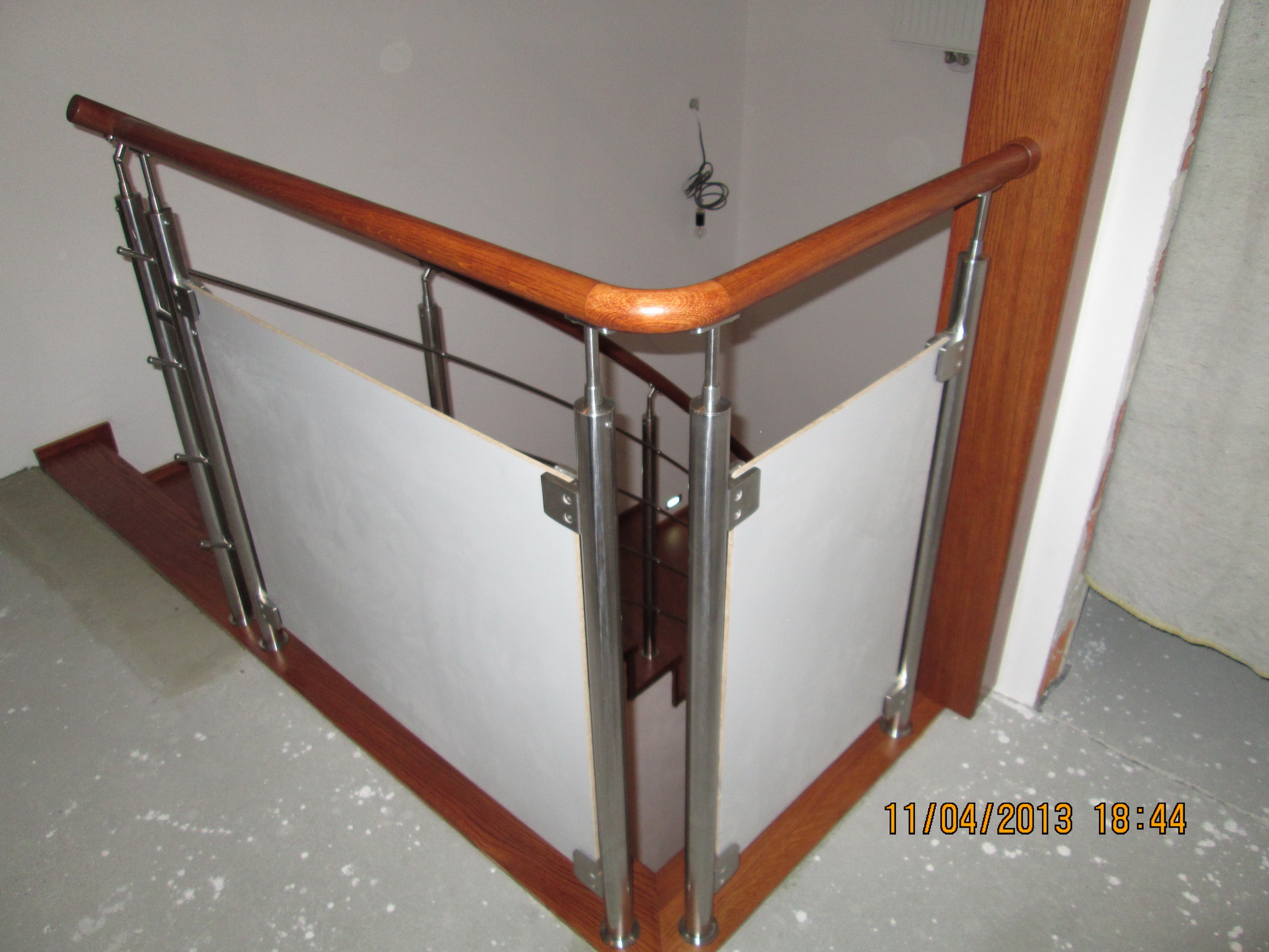 Obložkové schody s dřevěným i s nerezovým zábradlím
