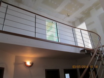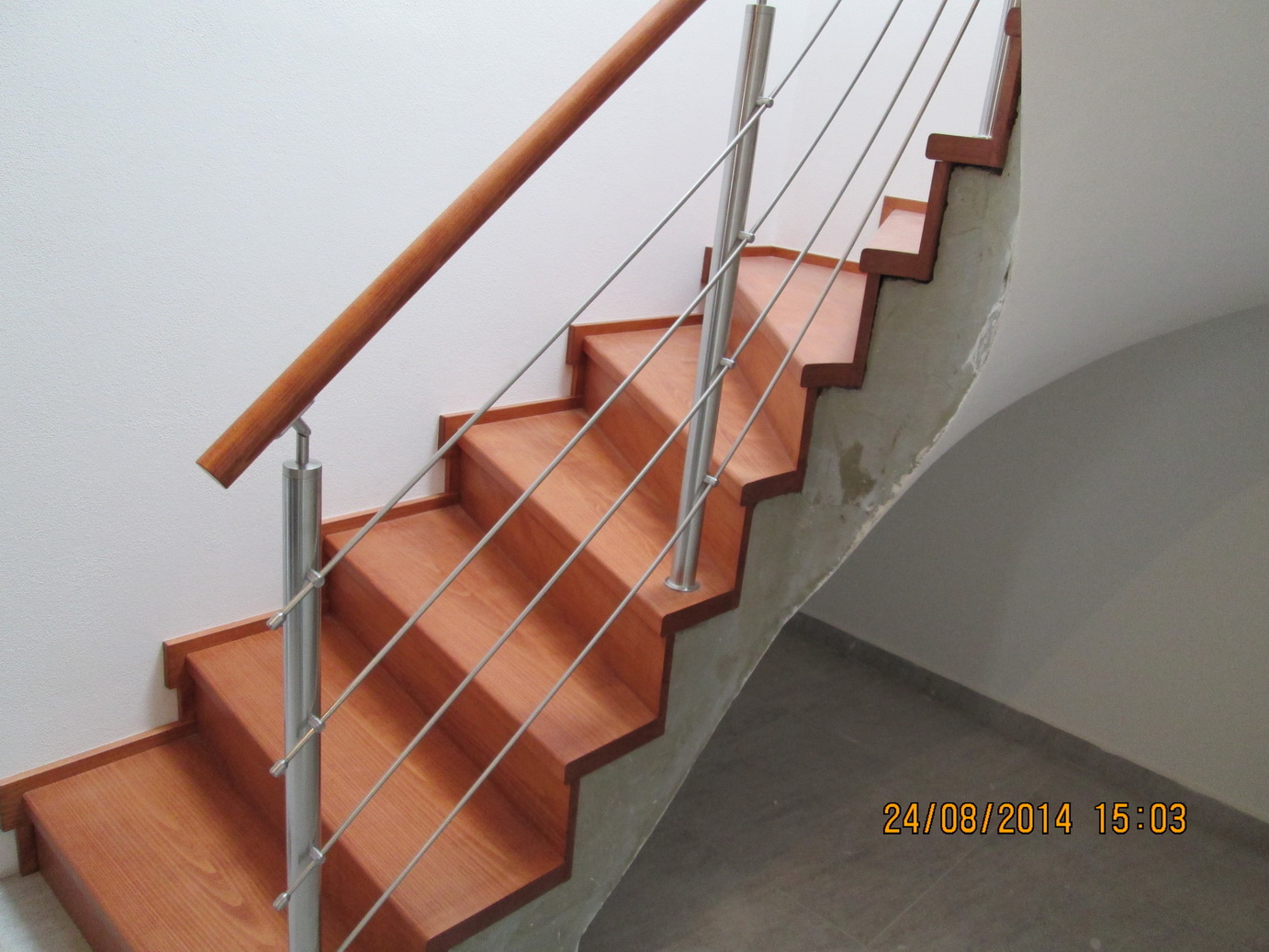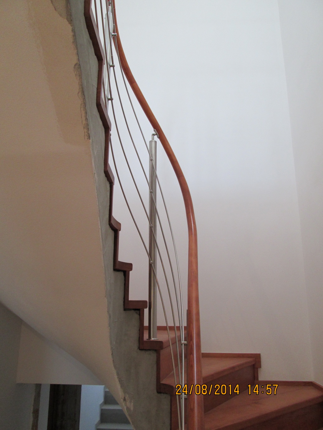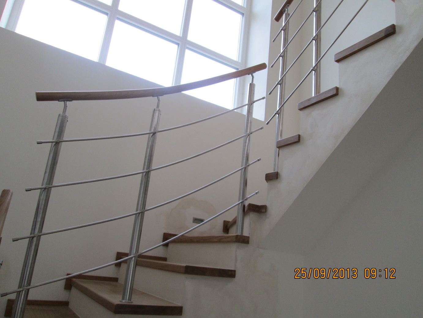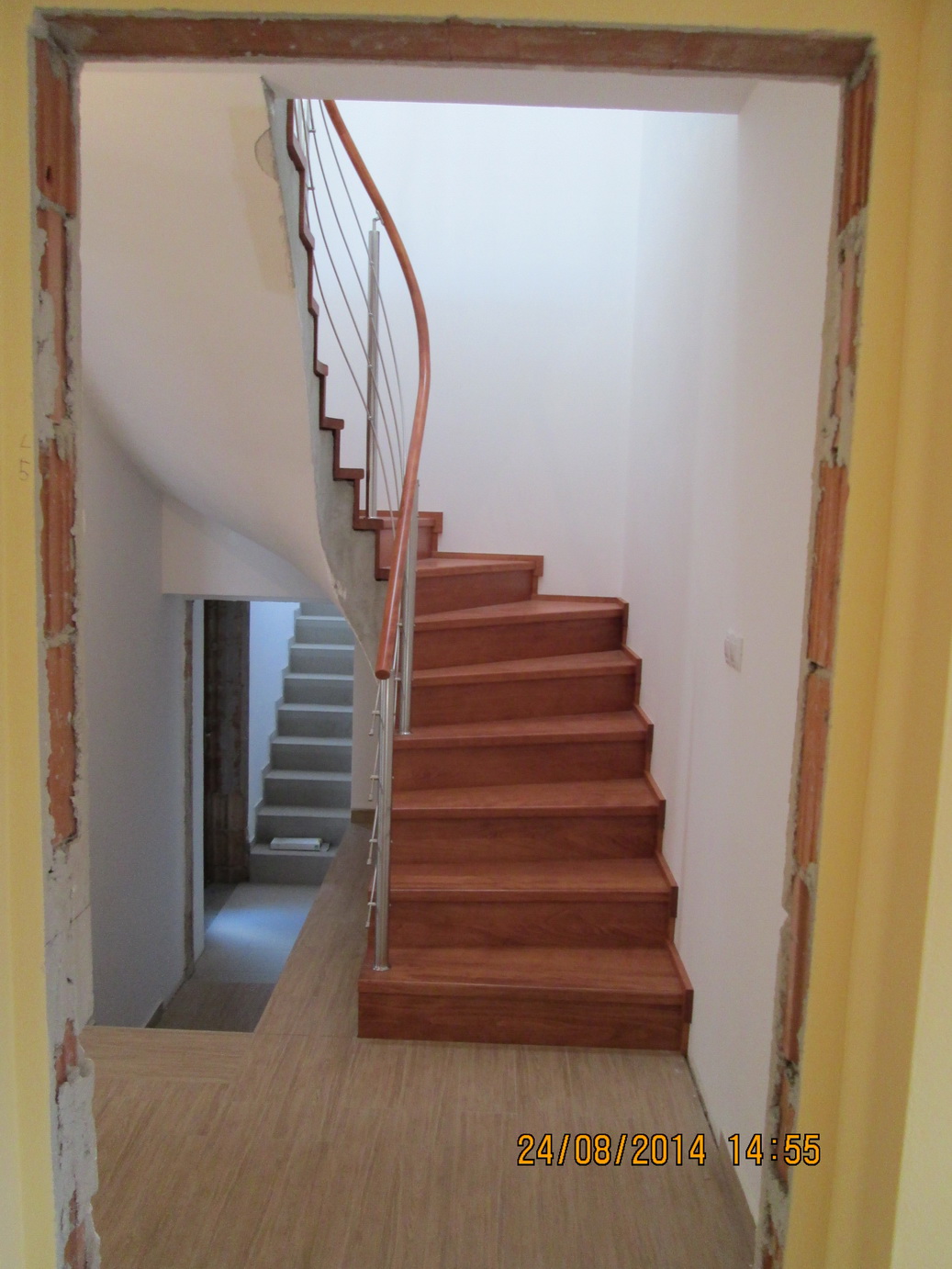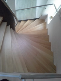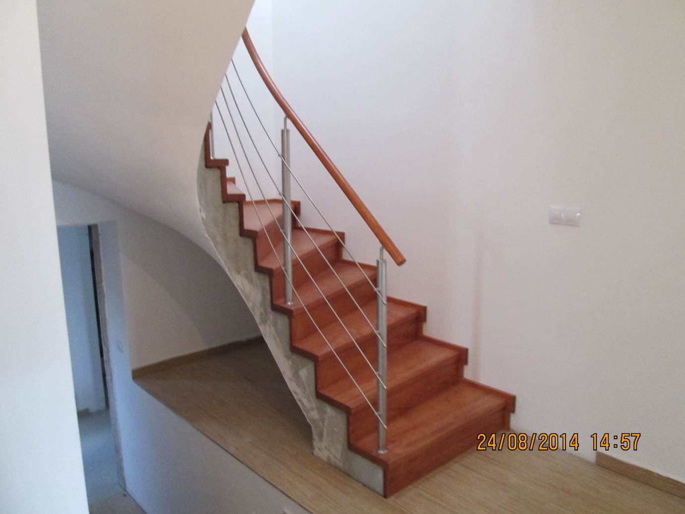 Obložkové schody s dřevěným i s nerezovým zábradlím