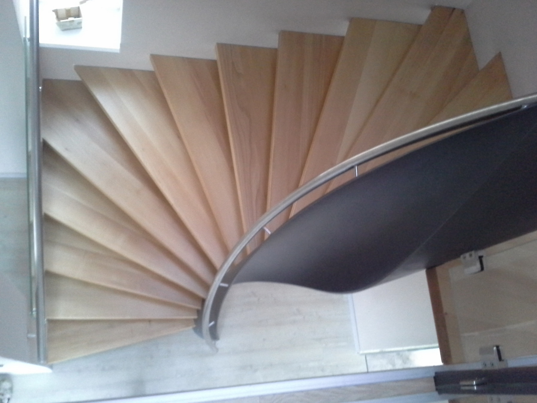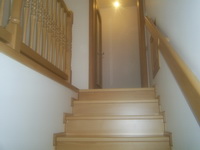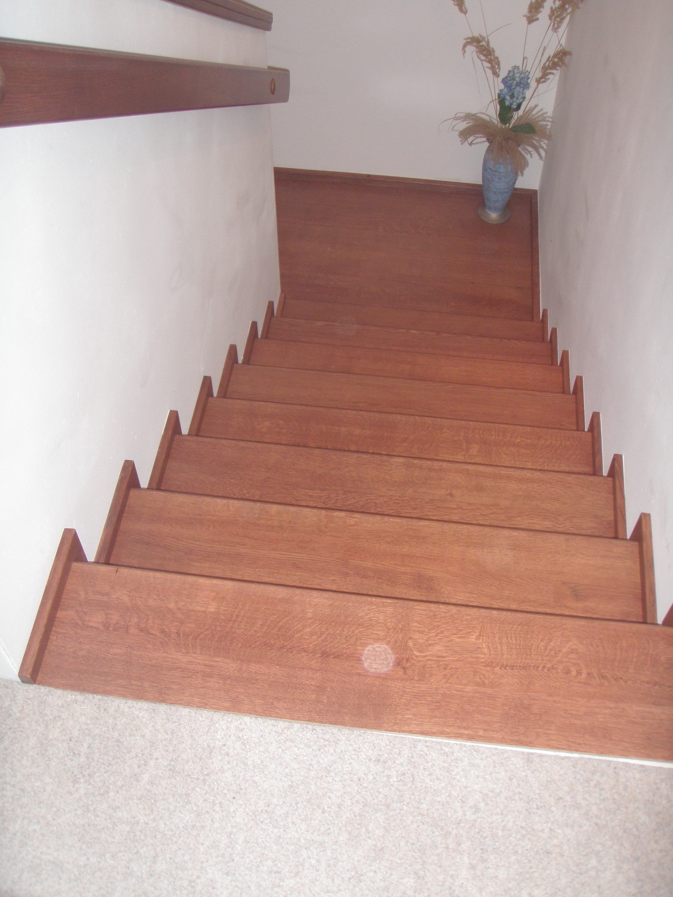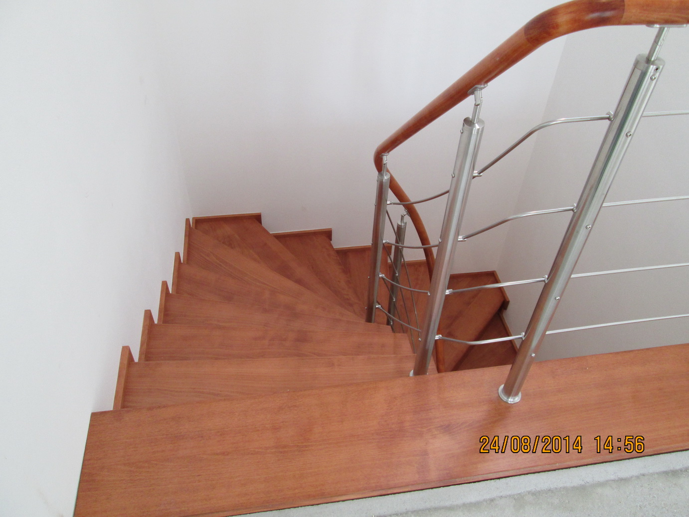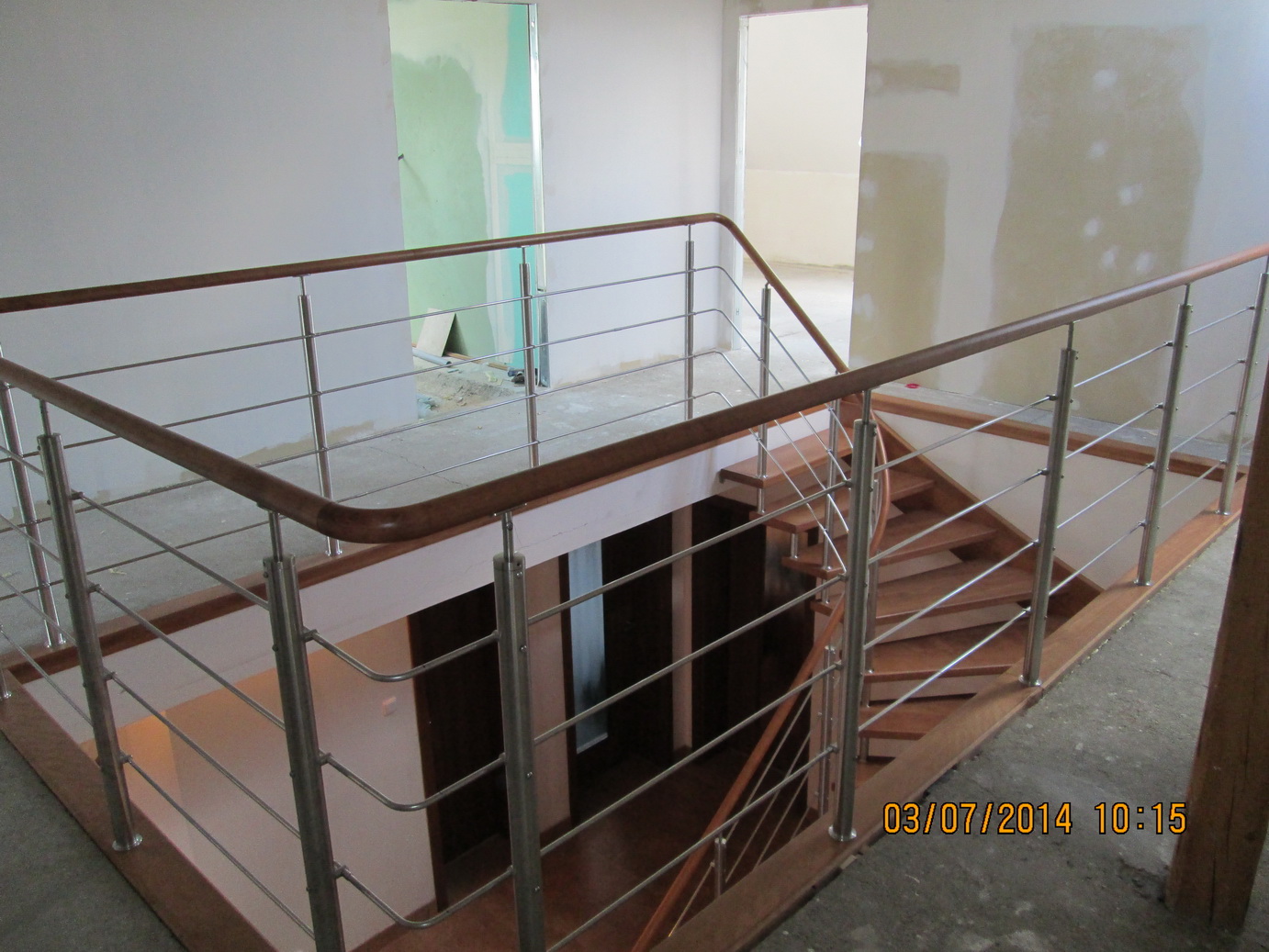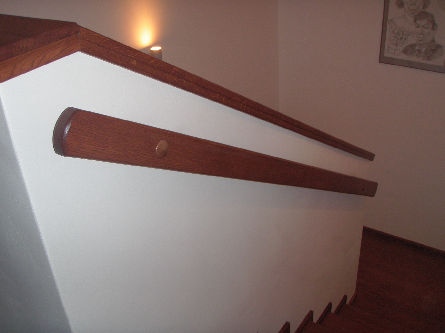 Obložkové schody s dřevěným i s nerezovým zábradlím