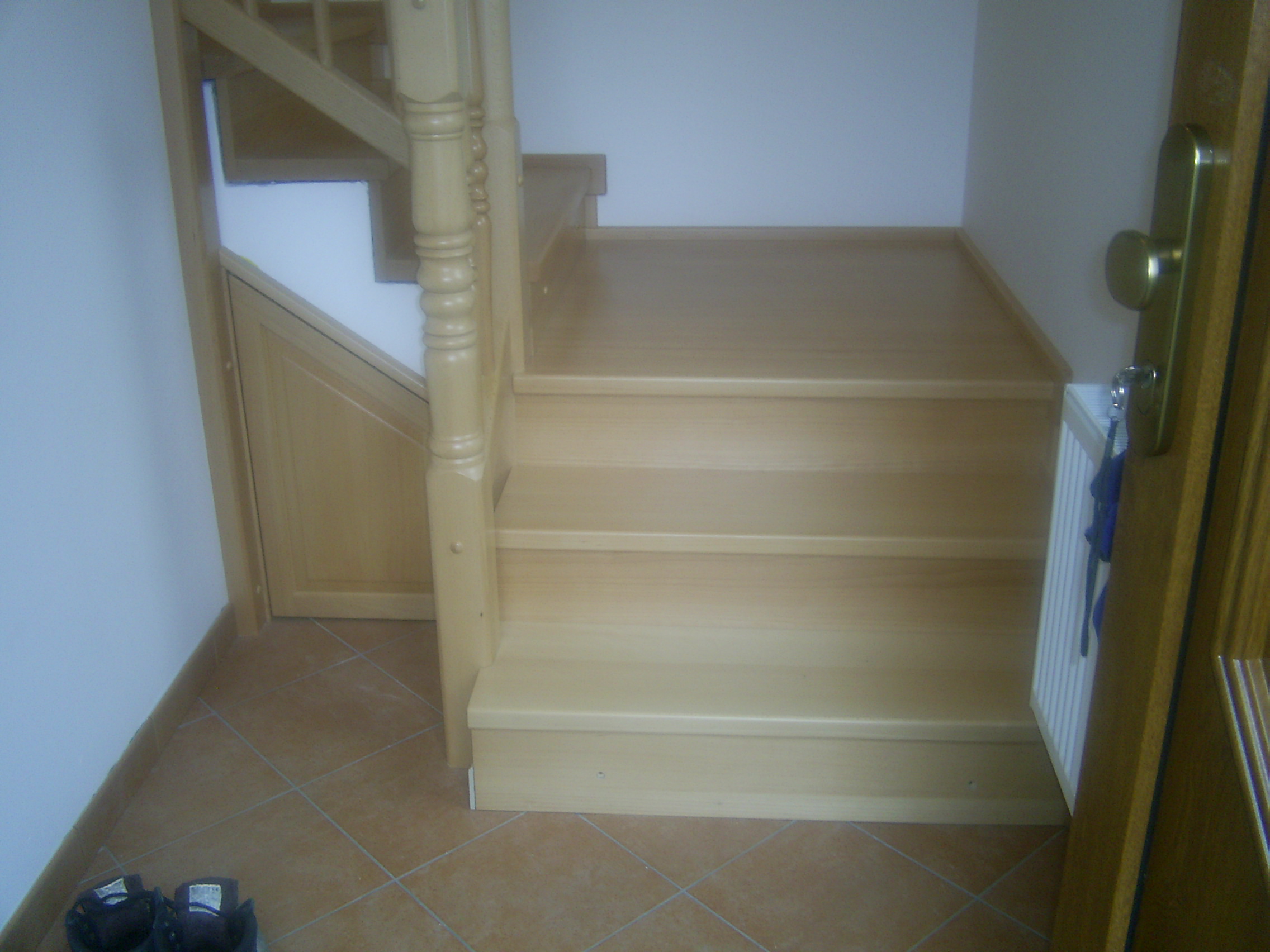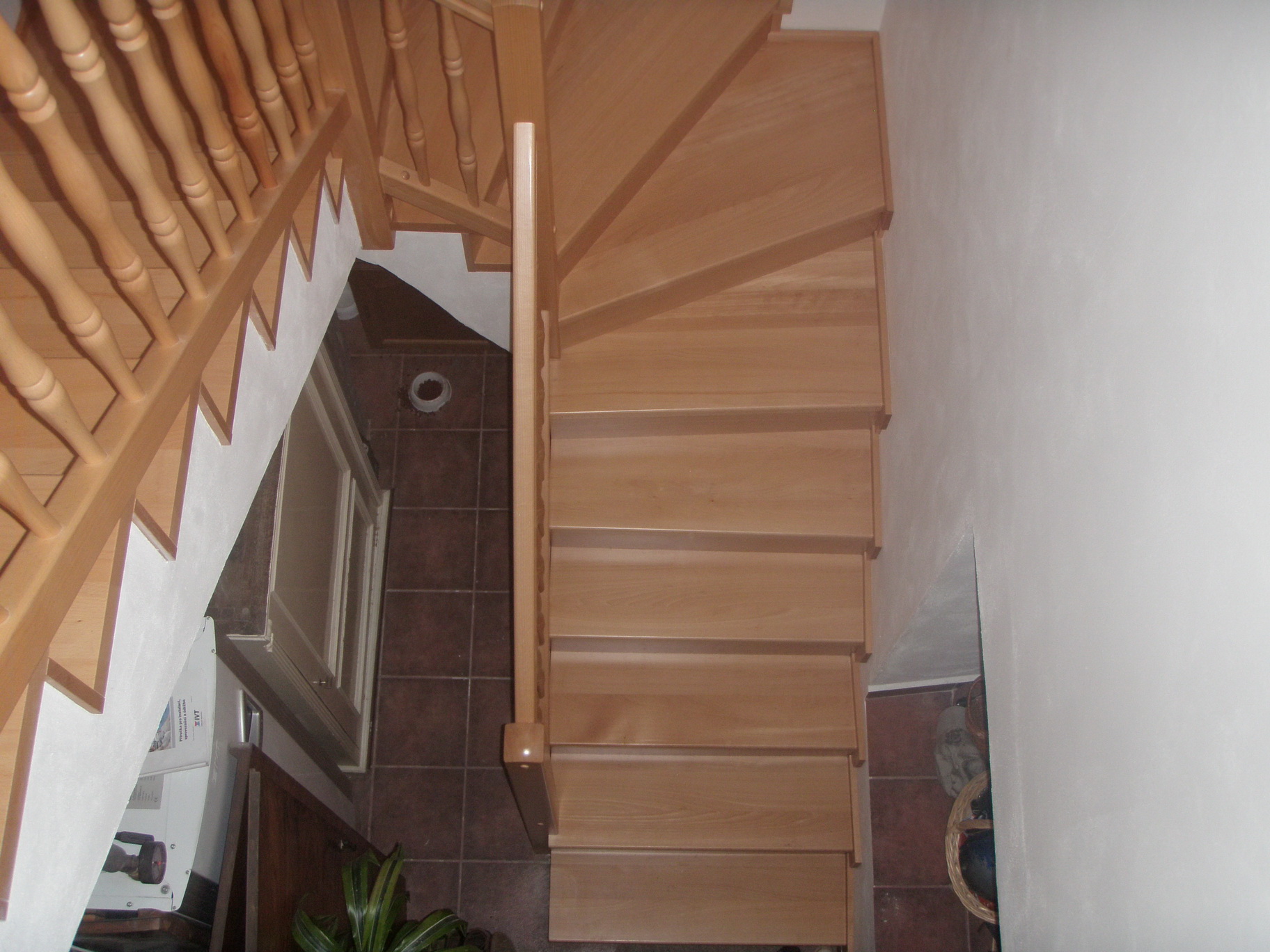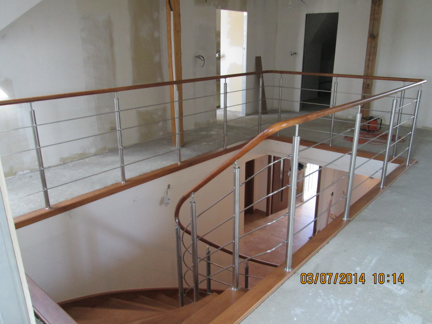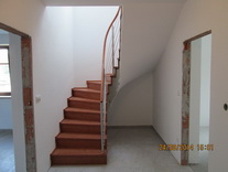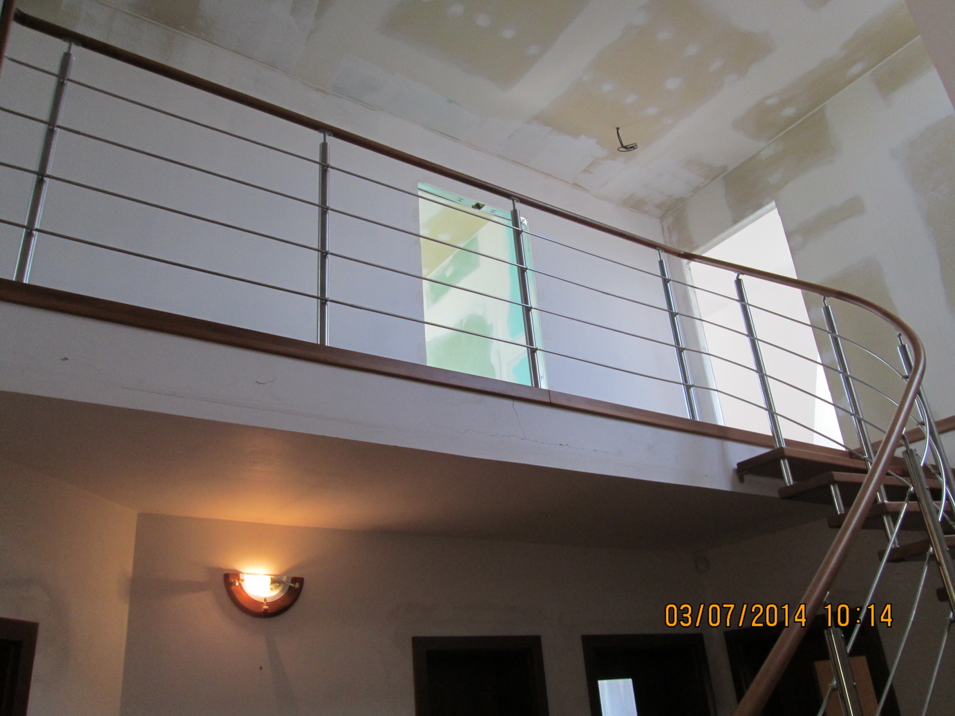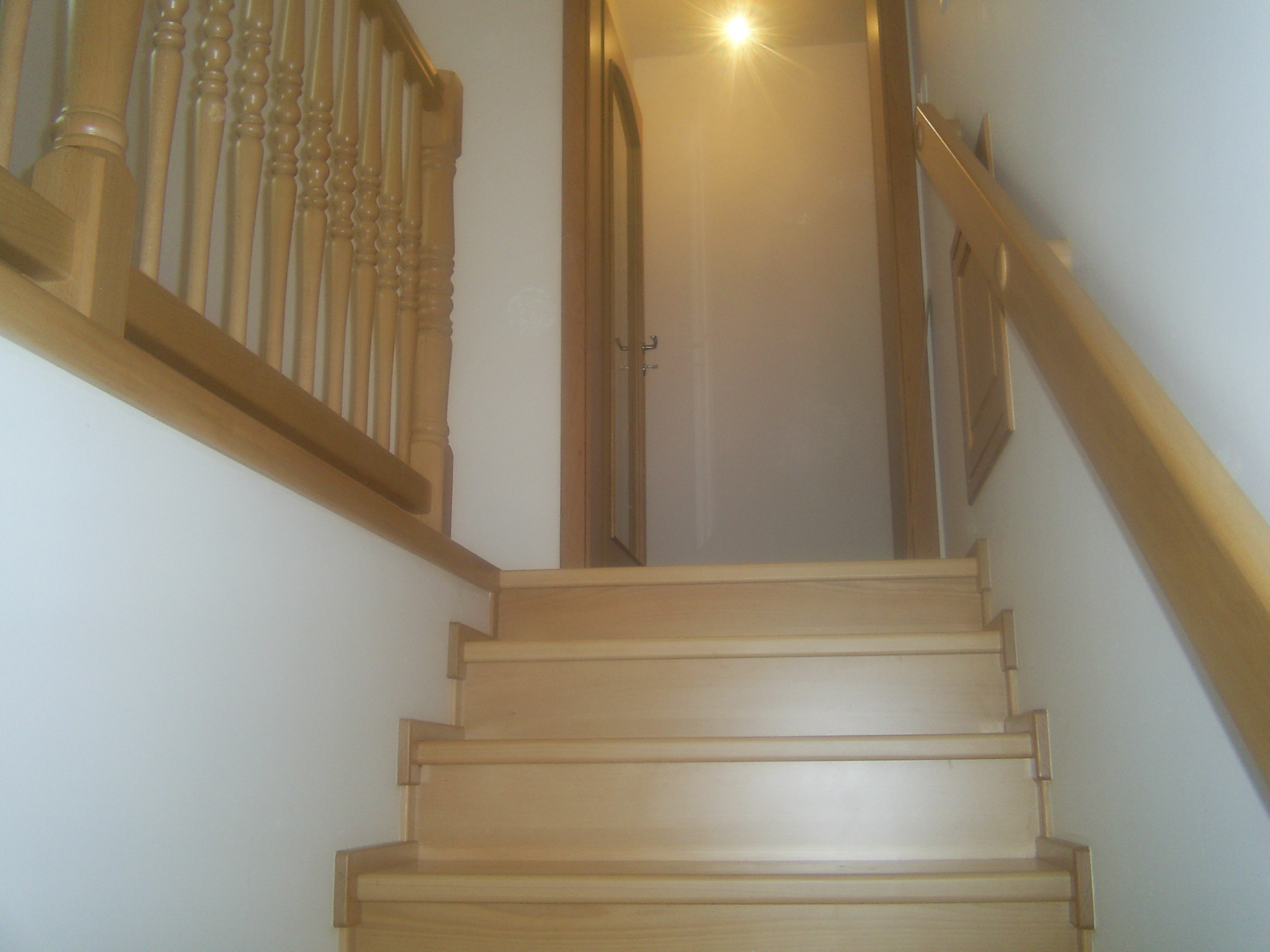 Obložkové schody s dřevěným i s nerezovým zábradlím