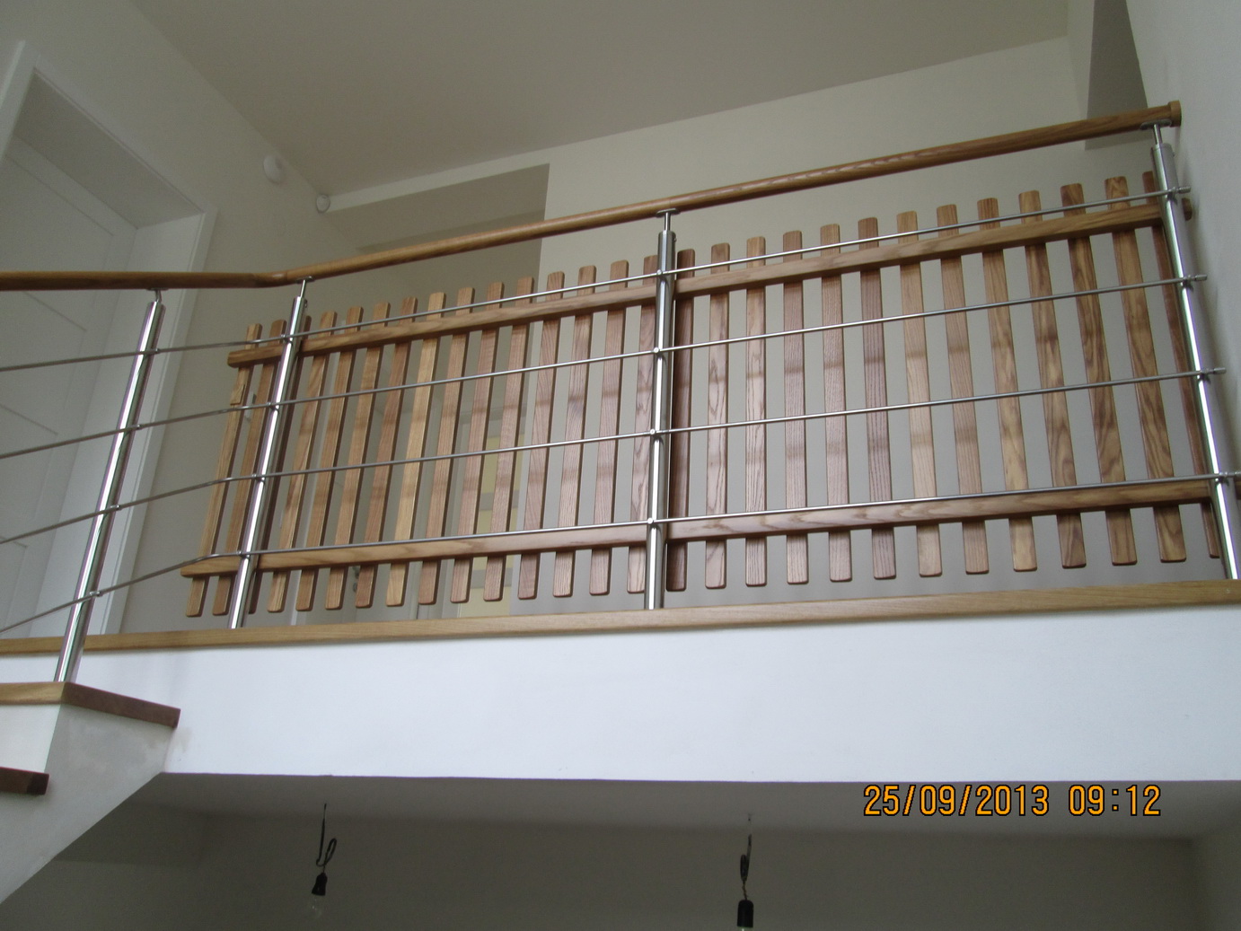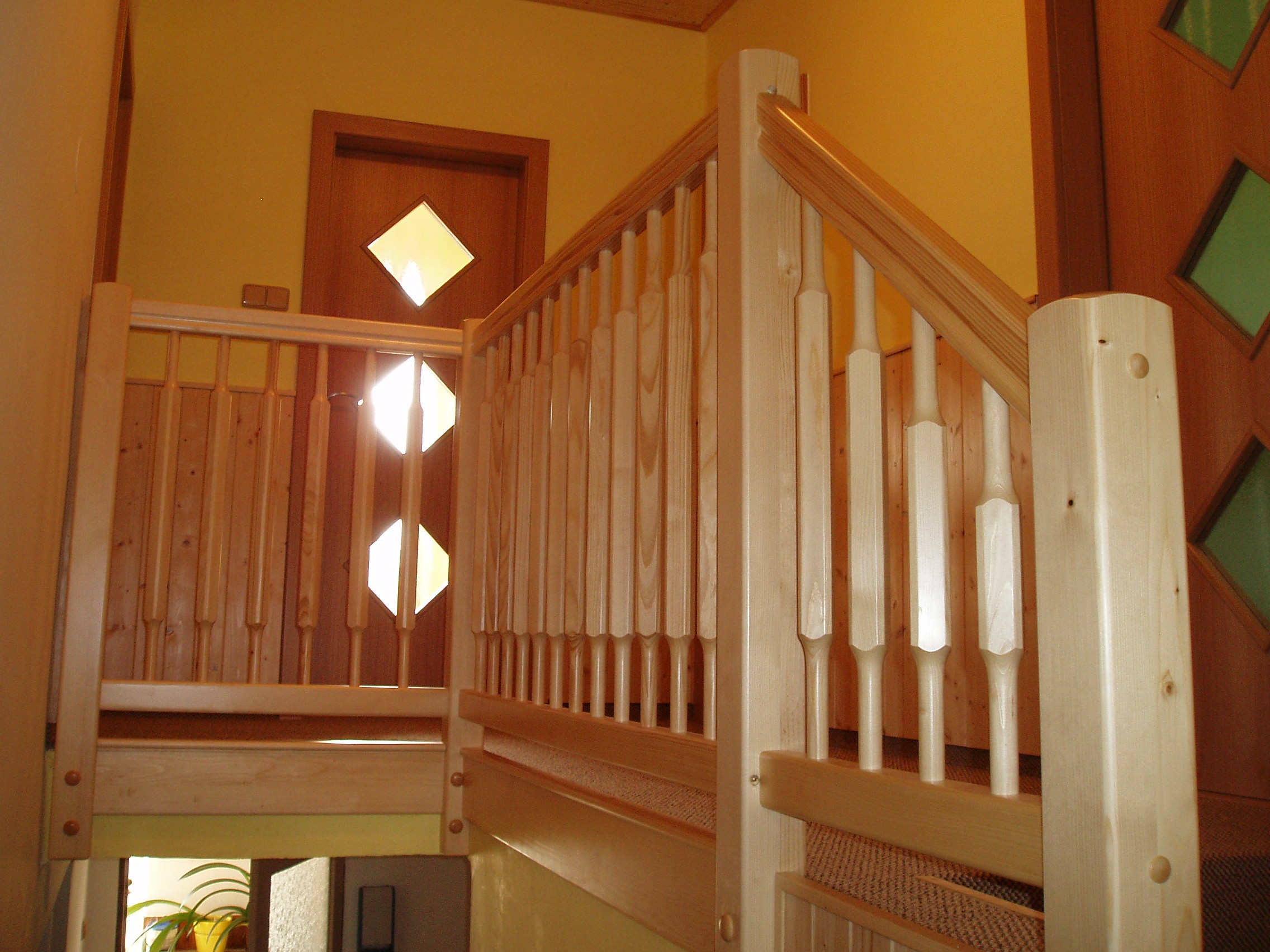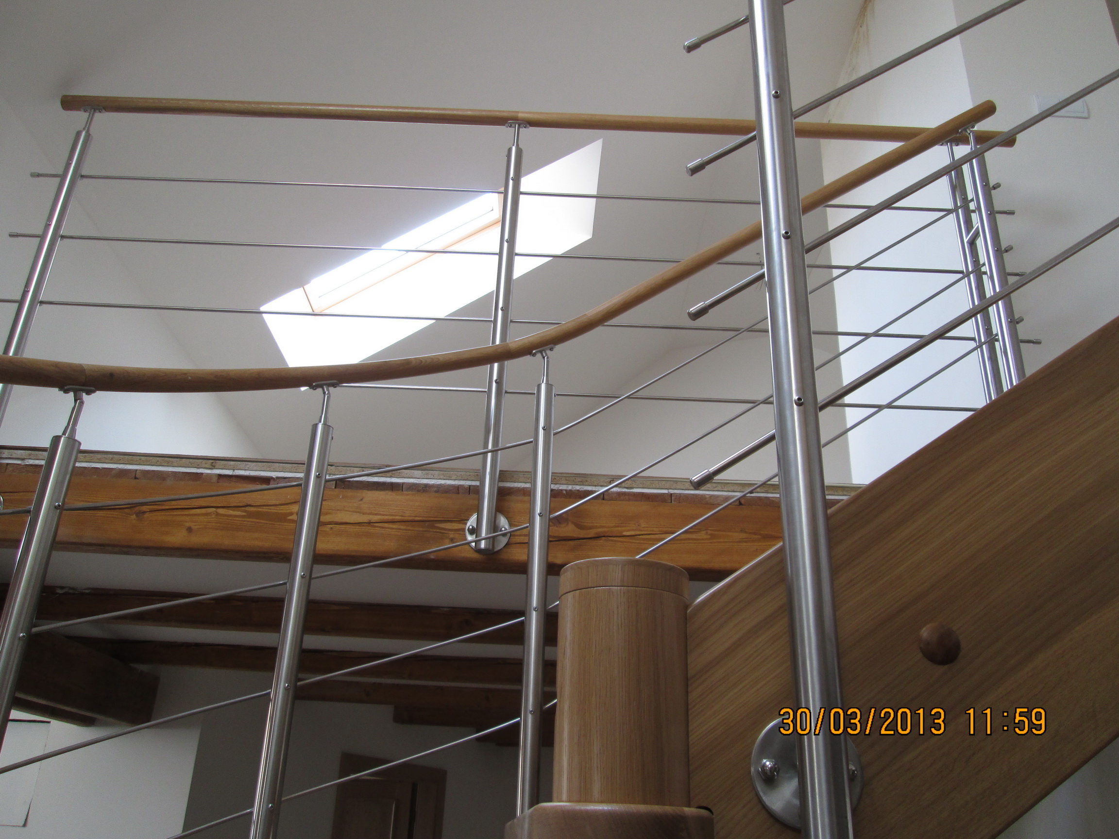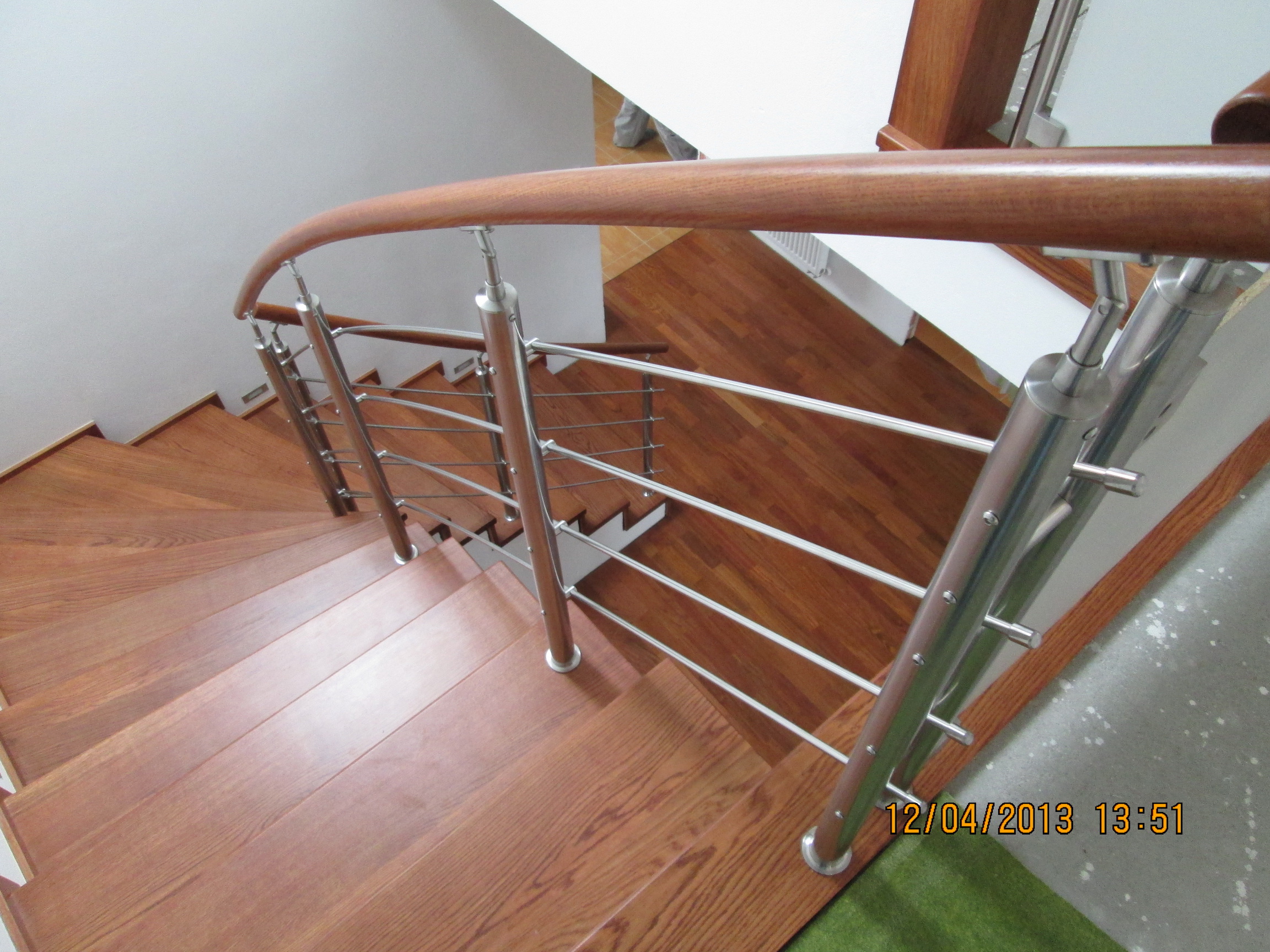 Obložkové schody s dřevěným i s nerezovým zábradlím
