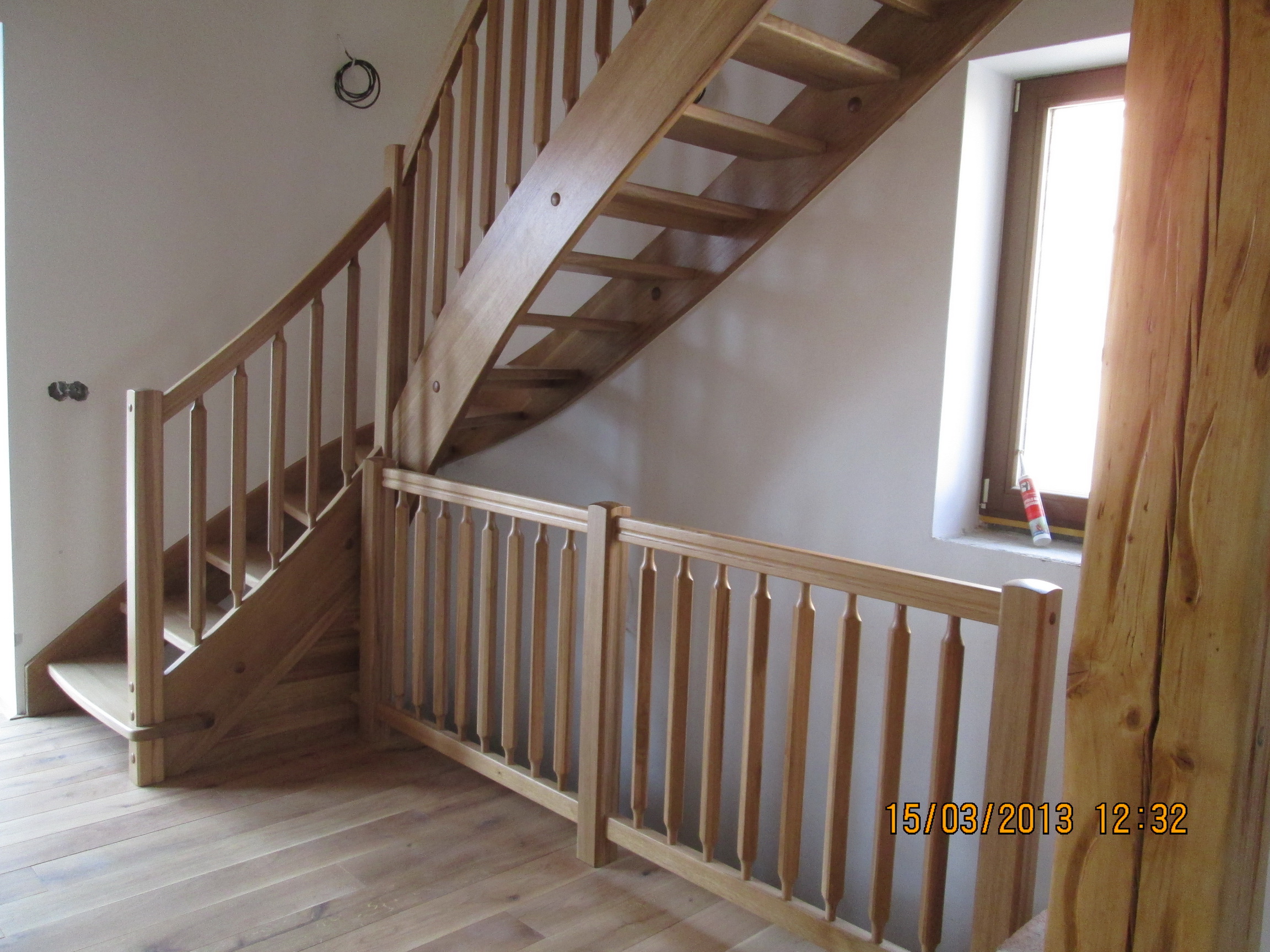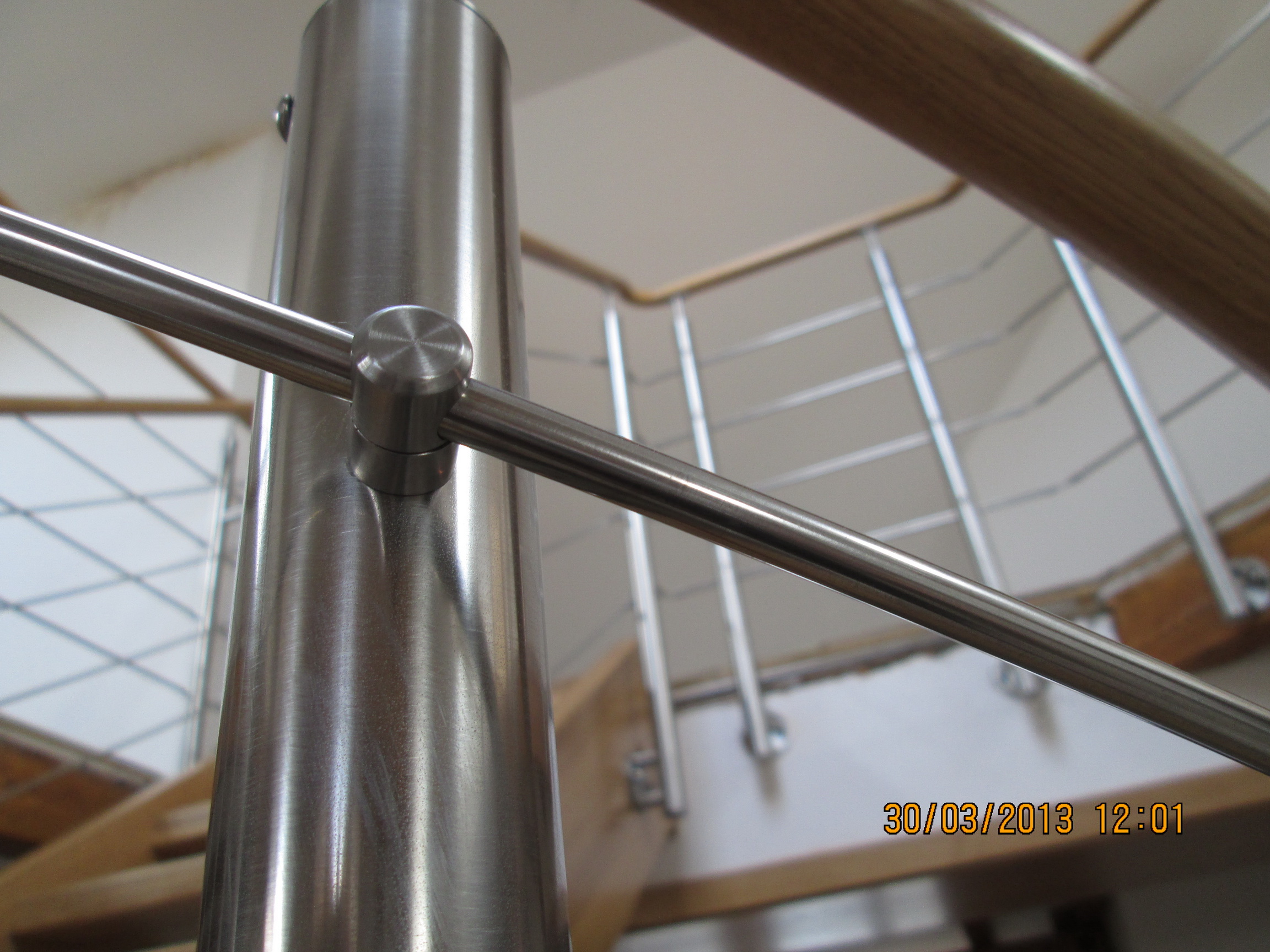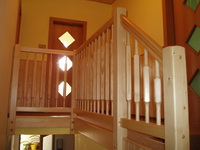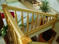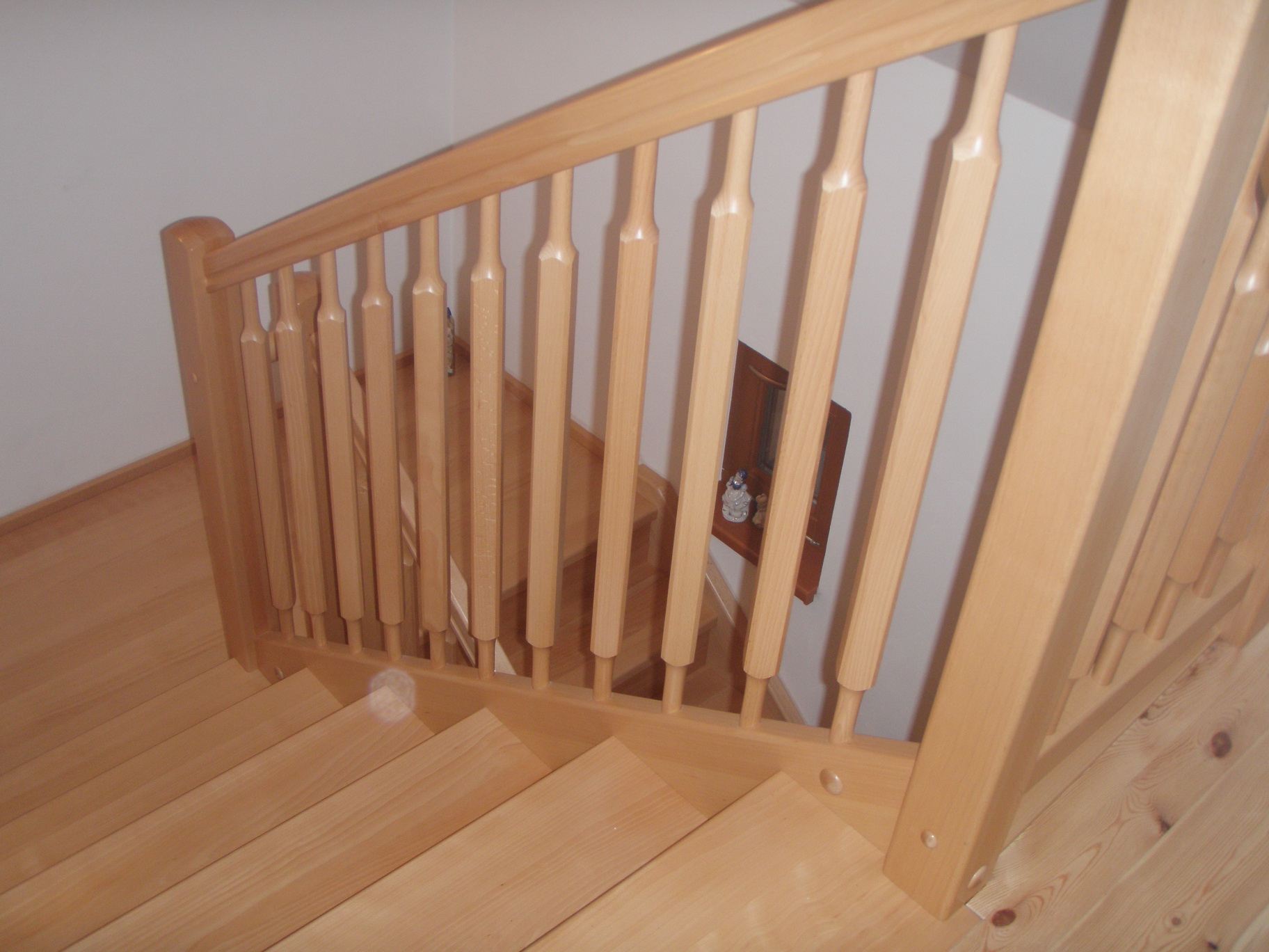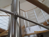 Obložkové schody s dřevěným i s nerezovým zábradlím